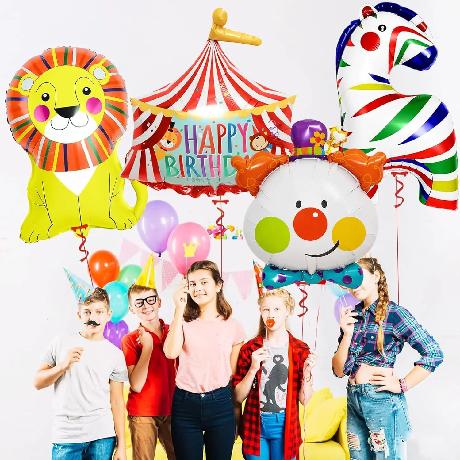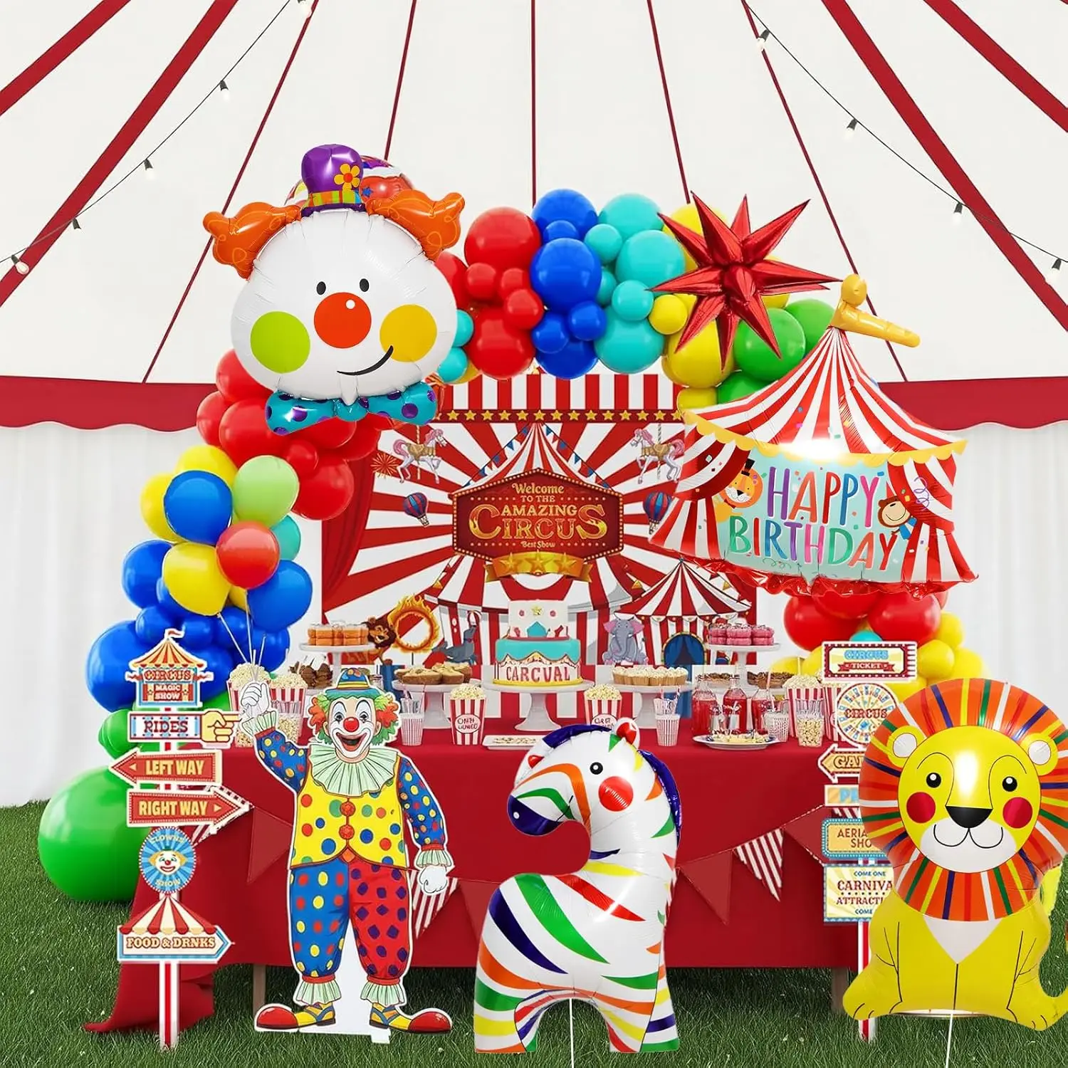 Bring the excitement of the big top to your event with this Circus Theme Happy Birthday Balloon Set.