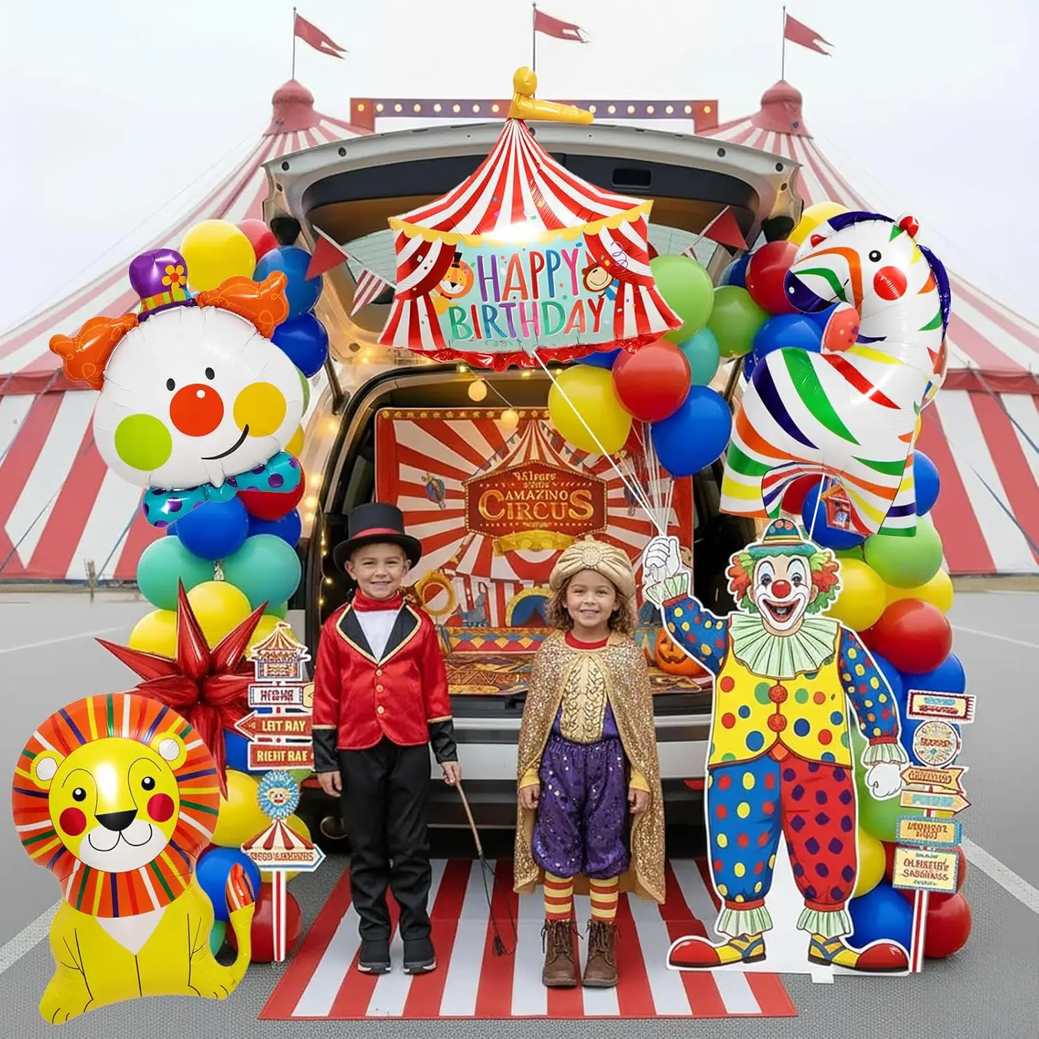 Make your child’s birthday unforgettable with this cheerful circus balloon decoration set.