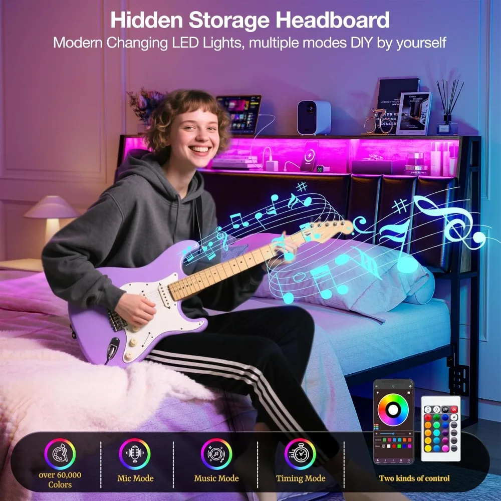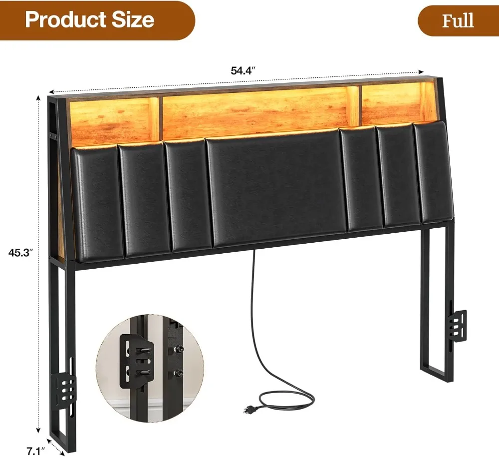 Upgrade your bedroom with this full-size hidden storage headboard in sleek black. Features a built-in storage compartment to keep books, devices, and essentials neatly organized. Integrated LED lights create customizable ambiance, perfect for reading or relaxing. Equipped with 2 power outlets and 2 USB ports for convenient device charging without clutter. Sturdy construction ensures durability and long-lasting support for everyday use. Designed for easy assembly with included instructions and hardware. The modern, minimalist design complements contemporary bedroom décor. Ideal as a functional alternative to bulky nightstands while saving space. Soft-lined storage compartments protect your items and add a premium touch. Lightweight yet strong, the headboard provides both style and practicality. Perfect for full-size bed frames seeking functionality and elegance. Elevate your bedroom with this smart, stylish, and multi-functional headboard today.