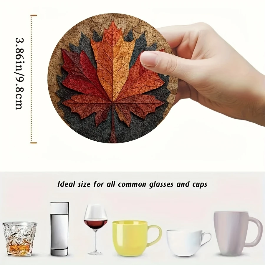 Welcome to Household Harmony Mart, where beautiful table accessories add style and personality to your home. These Maple Leaf Wooden Coasters feature vibrant color printing with a charming autumn-inspired maple leaf design. Crafted from durable wood, they help protect tables from heat, moisture, and drink stains. The circular shape makes them perfect for cups, mugs, glasses, and beverage containers. Their nature-themed design adds a warm decorative touch to dining tables, coffee tables, and restaurants. Ideal for home décor, seasonal decorations, or photography props. The sturdy construction ensures long-lasting use and easy maintenance. Add a touch of autumn charm to your table with these stylish maple leaf wooden coasters.