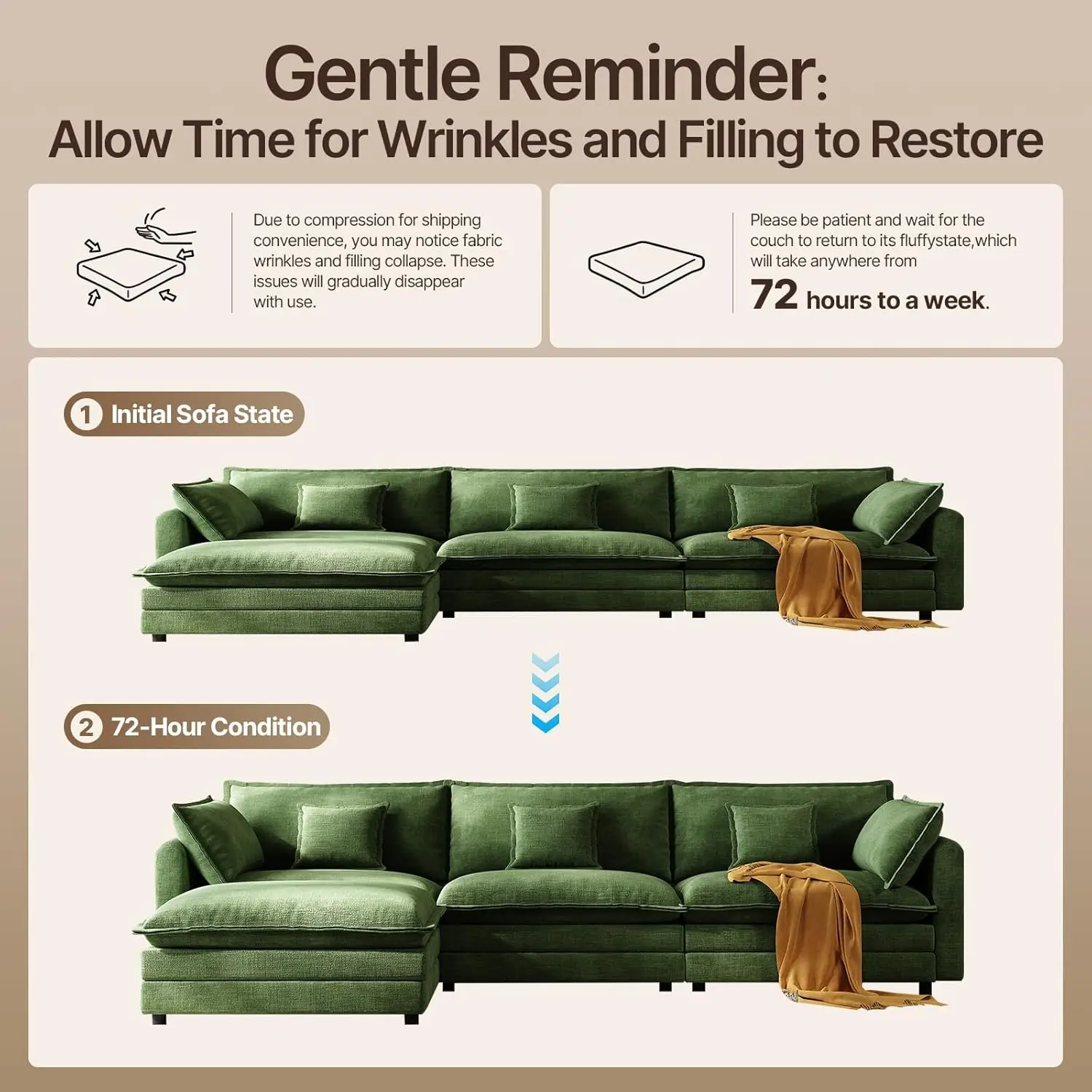 Welcome to Household Harmony Mart! Transform your living space with our 102” Green Cloud Modular Sectional Sofa. This L-shaped sofa includes a movable ottoman for flexible seating arrangements. Upholstered in soft, durable fabric, it provides comfort for the whole family. The modular design allows customization to perfectly fit your room layout. Ideal for modern living rooms, apartments, or entertainment areas. Sturdy construction ensures long-lasting support and durability. Stylish green upholstery adds a refreshing pop of color to your decor. Easy to maintain and clean for everyday use. Perfect for lounging, reading, or hosting guests. Upgrade your home with this versatile, functional, and contemporary sectional sofa.
